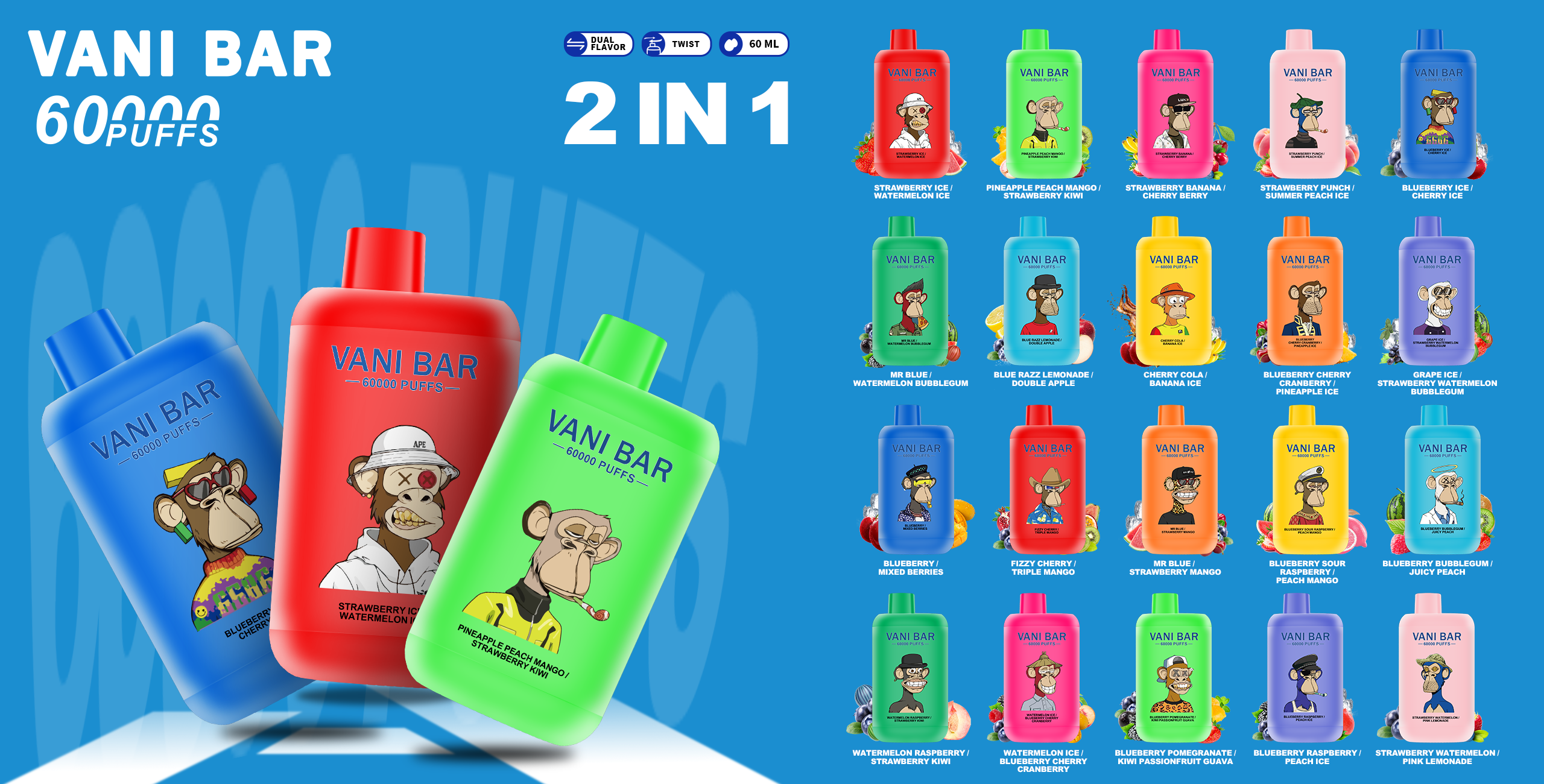 Jan 2026 | Új termékek 【VANI BAR】60000 PUFFS 2in1 BLUE RAZZ LEMONADE/DOUBLE APPLE